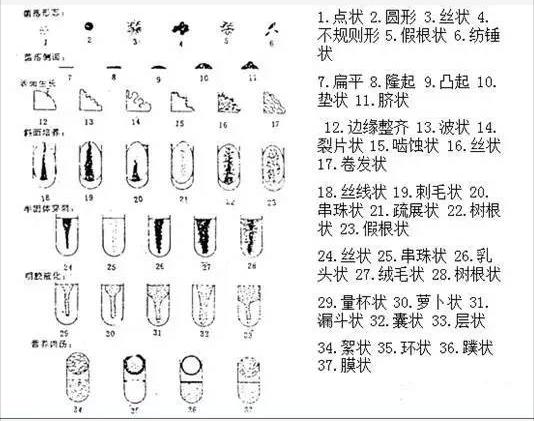 菌落大小、形態、顏色(色素是水溶性還是脂溶性)、光澤度、透明度、質地、隆起形狀、邊緣特征及遷移性等;